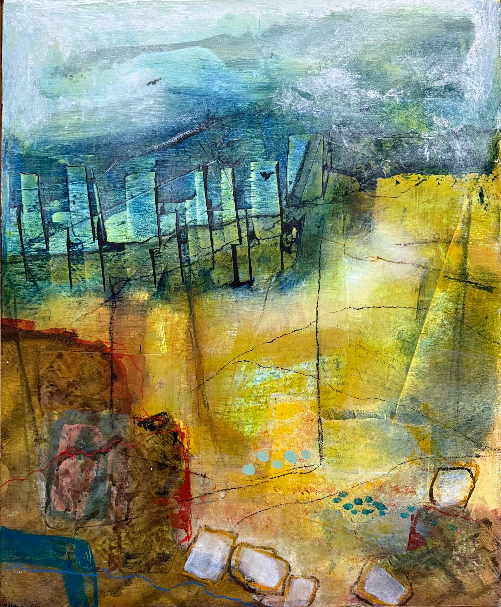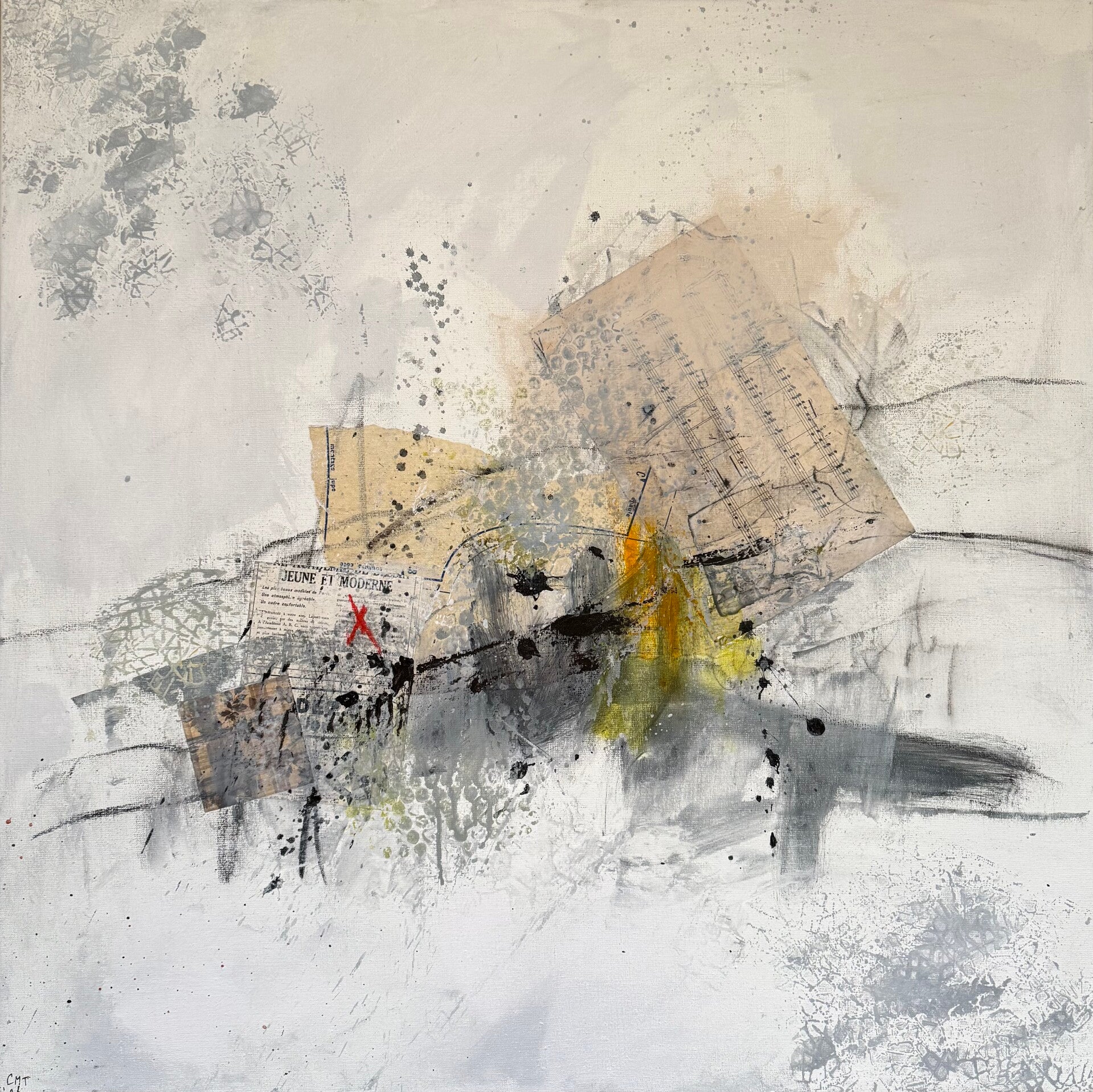 Acryl en collage op houten paneel, 40x60